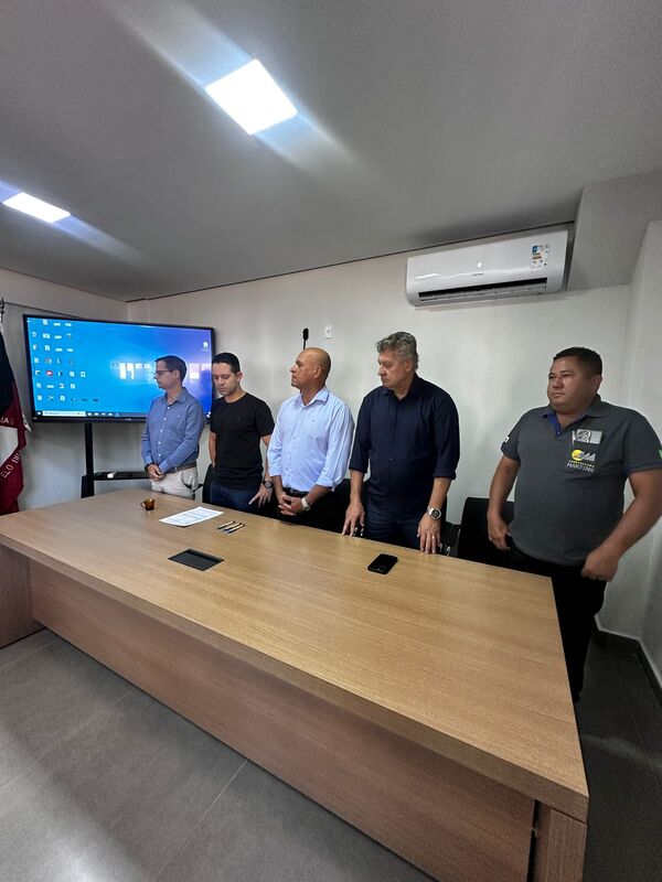 Fizeram parte da mesa para a assinatura da ordem de serviços o diretor do SAAE, Esmeraldo Pereira Santos, o prefeito de Passos, Diego Rodrigo de Oliveira, o vice-prefeito e Secretário Municipal de Planejamento, Maurício Antonio da Silva, o vice-presidente da Câmara Municipal de Passos, Michael Silveira dos Reis e o proprietário da Construtora e Incorporadora Martins LTDA, Robson Martins Rodrigues.
